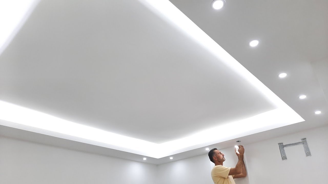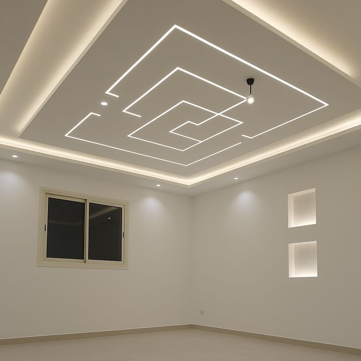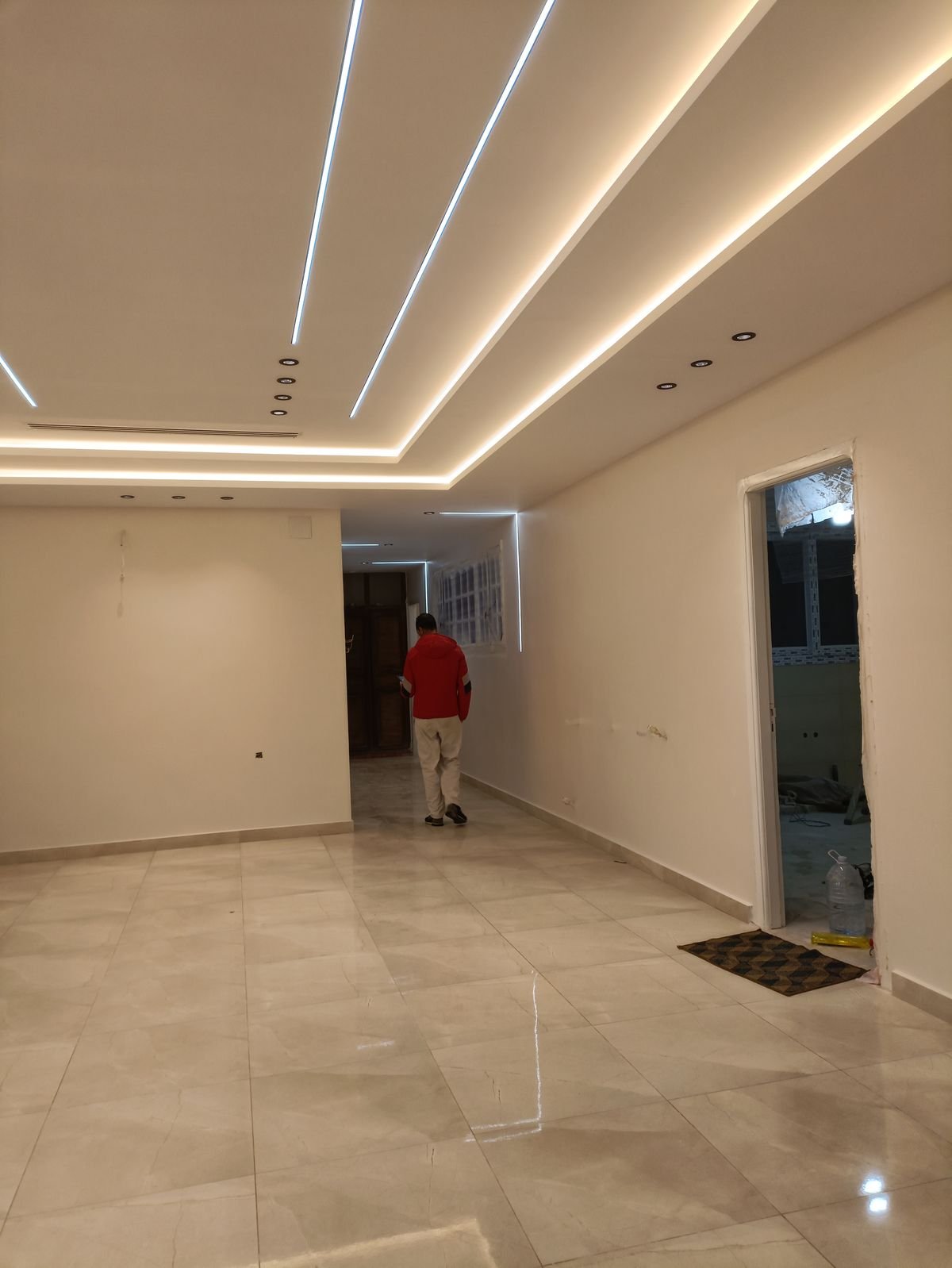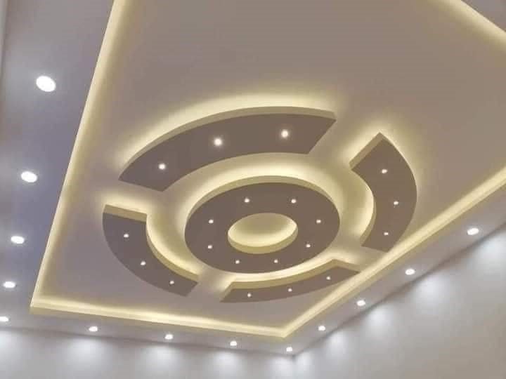 تركيب جبس بورد مودرن، أسقف معلقة، ديكورات جبسية بإضاءة سبوت لايت.
